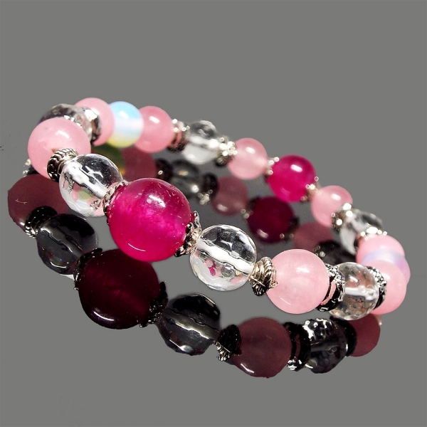 サイズ・容量 内周:約16cm サイズ:ジェイド各色 10mm・8mm 水晶ミラーボールカット 8mm シンセティックオパール 8mm