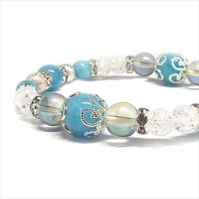 ブルークォーツ クラック水晶  大人気の雪の女王をモチーフにした愛と幸福が ぎゅっと詰まったブレスレット☆[D3-28]