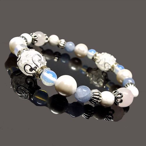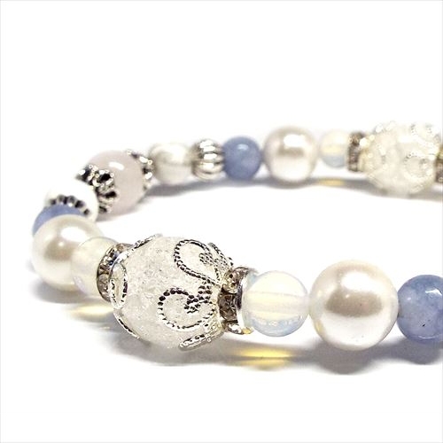 恋愛運をアップさせ、恋人や夫婦間を好転させる クラッククォーツ アクアマリン天然石ブレスレット |